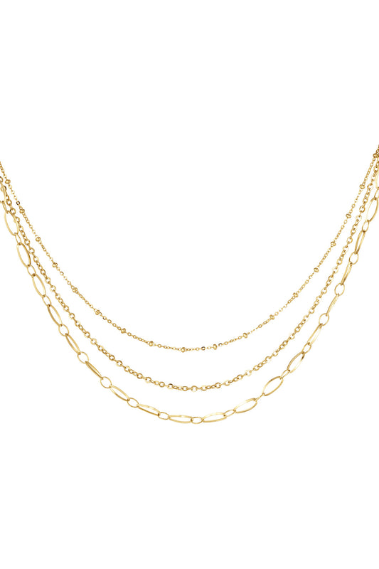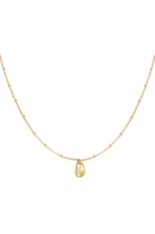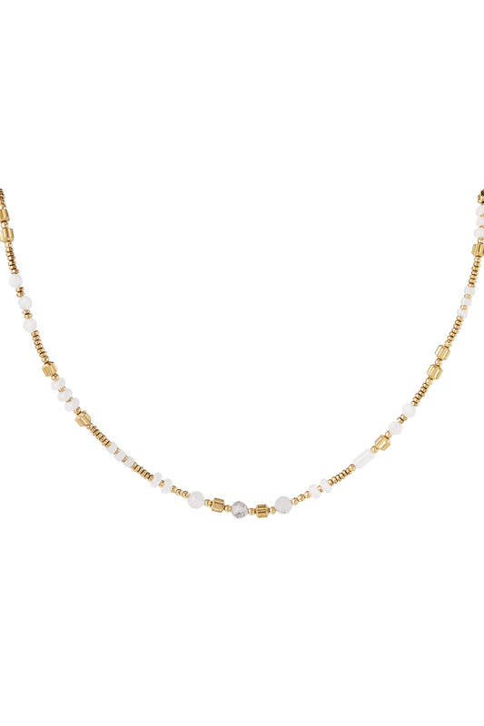 Goudkleurige Kralen Ketting met Witte Steentjes – Verstelbaar